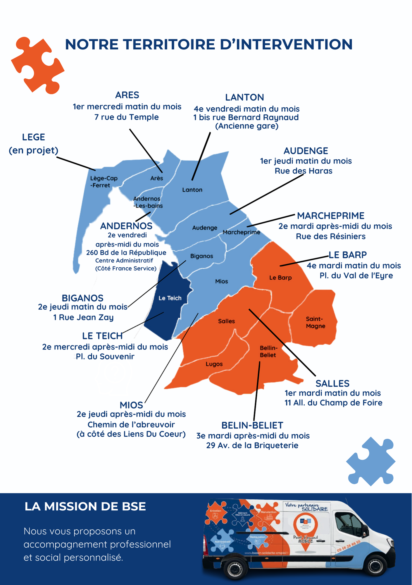 Notre association est aujourd'hui implantée à Audenge et est présente sur 14 communes du Bassin d'Arcachon et du Val de l'Eyre.